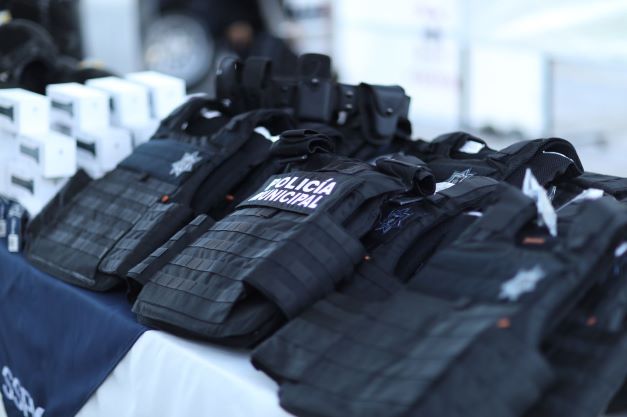 En total entregó 5 mil 540 camisolas y pantalones tácticos, 3 mil chamarras, 3 mil pares de botas, 700 fornituras, 700 fundas, 600 pares de divisas, 90 cascos balísticos, 700 chalecos balísticos, 800 lámparas de mano, 700 esposas, así como 820 camisolas y pantalones para la Coordinación General de Seguridad Vial.