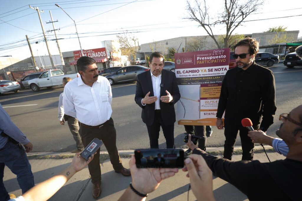 CD. JUAREZ, CHIH.- El Presidente Municipal, Cruz Pérez Cuéllar, llevó a cabo la entrega de obras de repavimentación de un tramo de la avenida Ramón Rivera Lara, la cual fue rehabilitada mediante el Programa de Mejoramiento de Vialidades 2022.