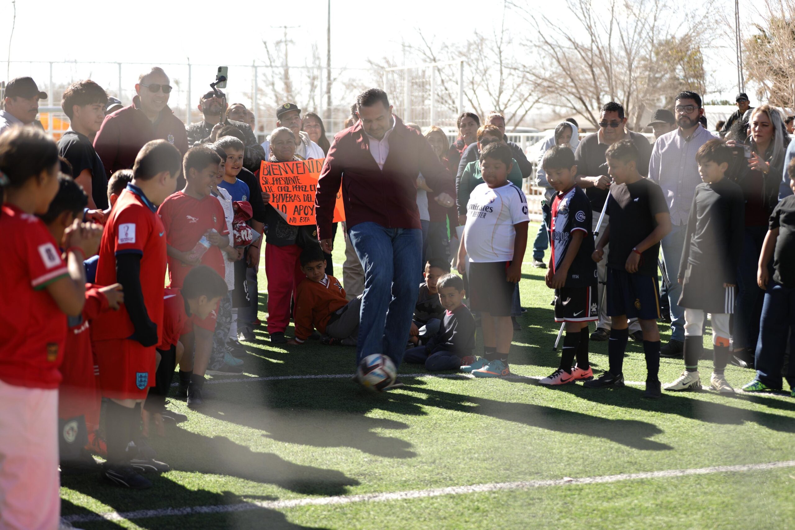 Por su parte, Daniel González García, titular de Obras Públicas informó que la obra consistió en la construcción de dos canchas de fútbol, colocación de mobiliario urbano y juegos, gravas decorativas, la fabricación de una cancha de concreto, además de reja perimetral en las canchas, con una inversión de 10,811,201 pesos.