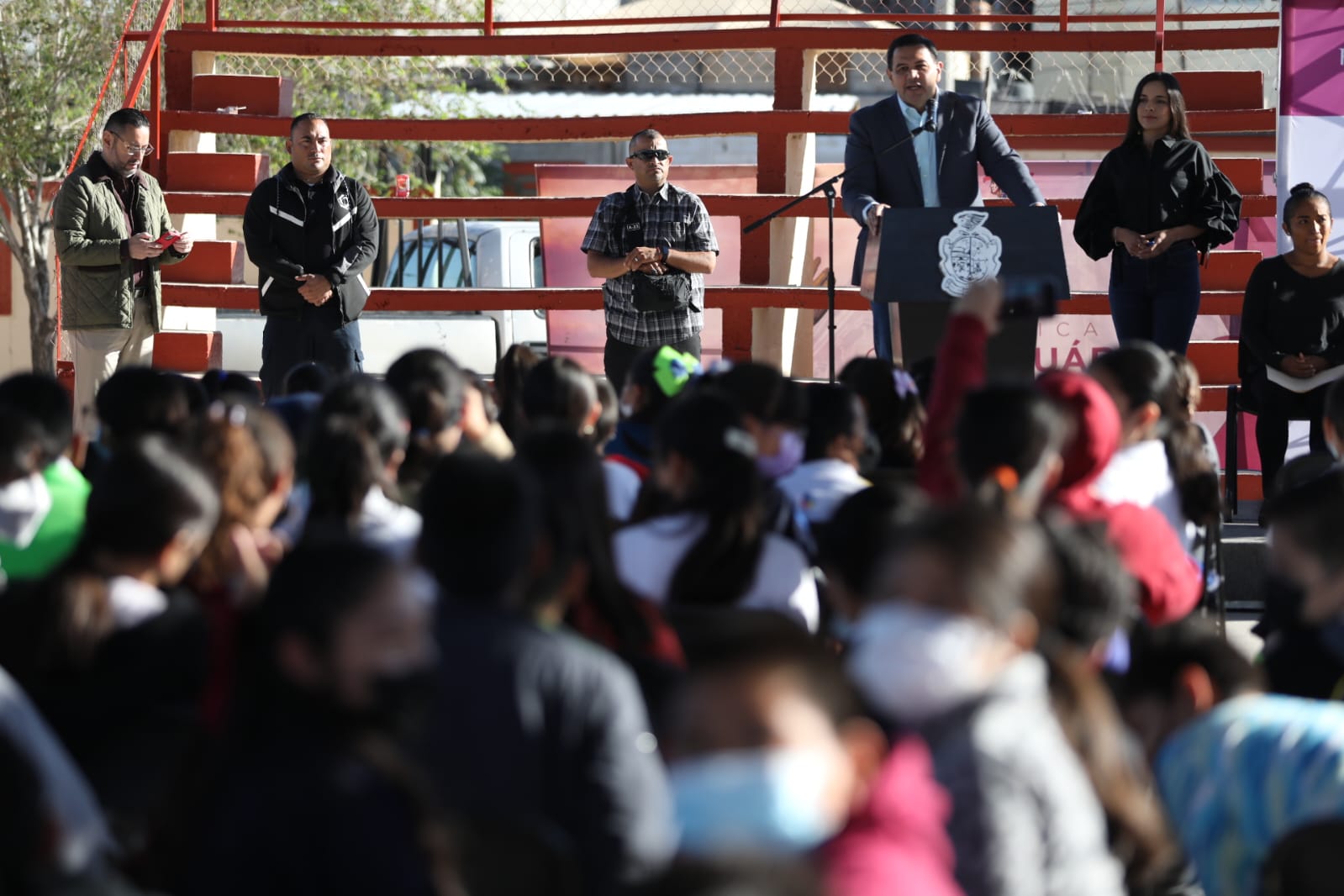 Durante el evento, el alumno Omar Medel Aguilar, agradeció al Presidente Pérez Cuéllar por apoyar a su escuela y solicitó ayuda para terminar el aula de usos múltiples, por lo que el alcalde señaló que revisará la solicitud para ver si el apoyo se brindará en una o dos etapas.
