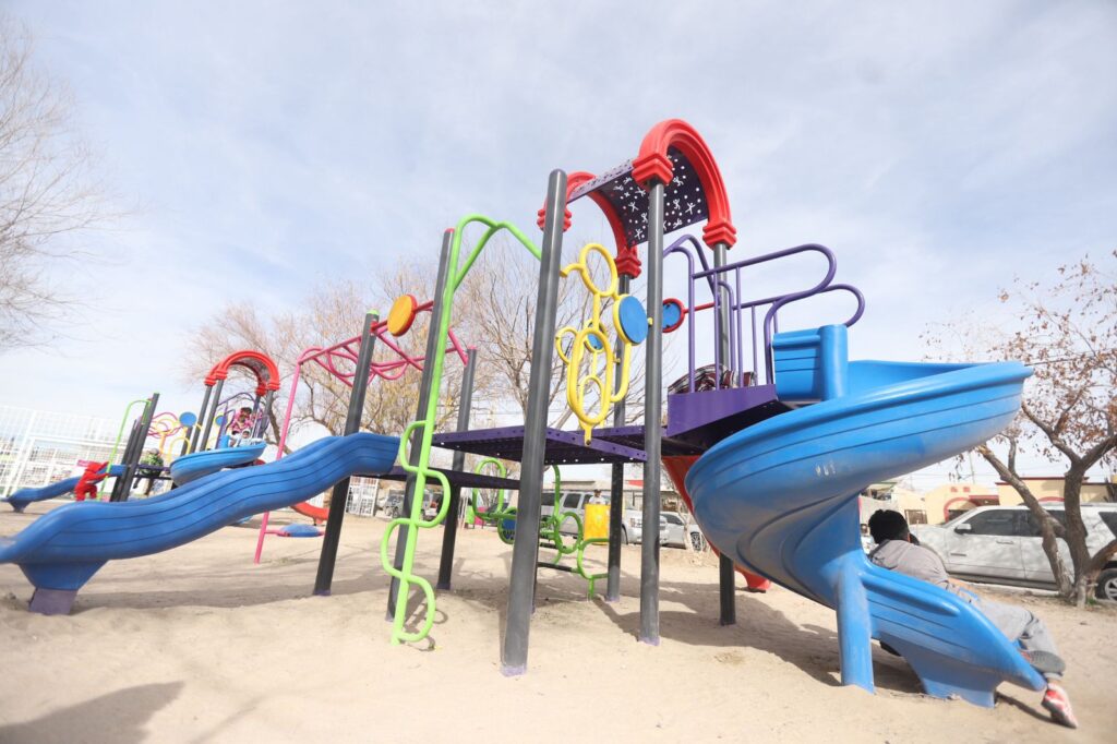 CD. JUAREZ, CHIH.- El Alcalde Cruz Pérez Cuéllar, encabezó la inauguración del parque comunitario en Riberas del Bravo Etapa II, el cual fue construido por parte de la Dirección General de Obras Públicas.