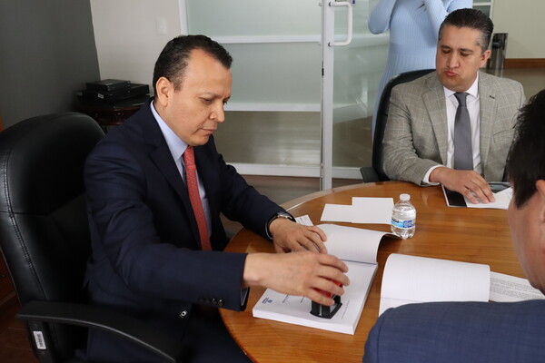Como parte del acto de entrega, el Auditor Superior firmó y selló de recibidos los documentos y posterior a ello se dará inicio con la apertura para su fiscalización.