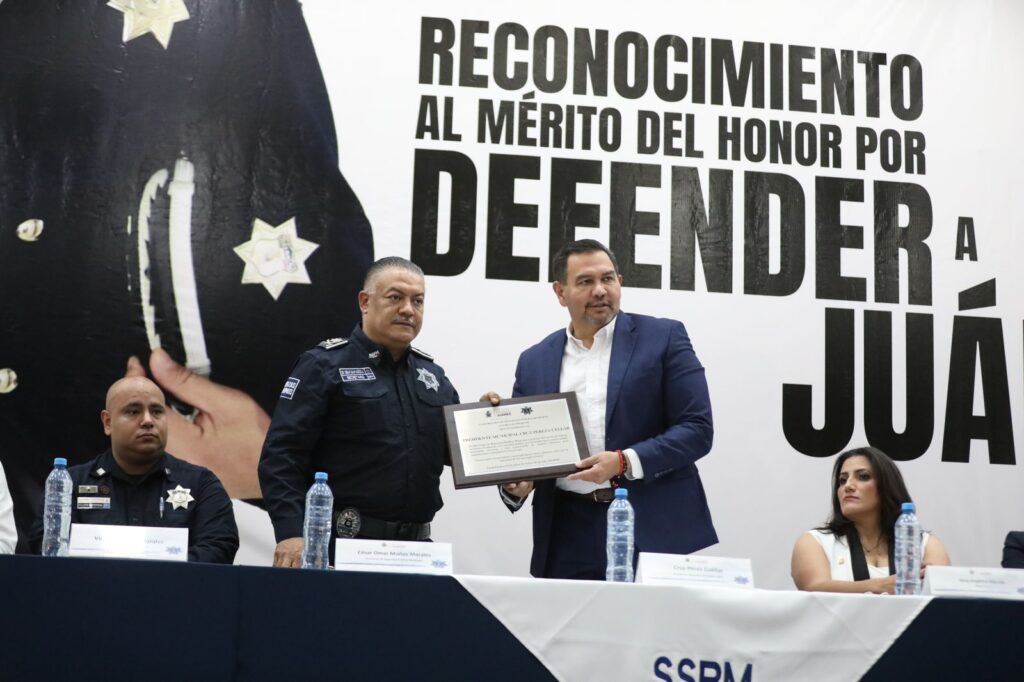 El alcalde entregó el galardón que distingue a los elementos policíacos que, de forma leal, valiente y con todo el honor, intervinieron en los hechos del 11 y 12 de agosto del 2022, mejor conocidos como el “jueves negro”.