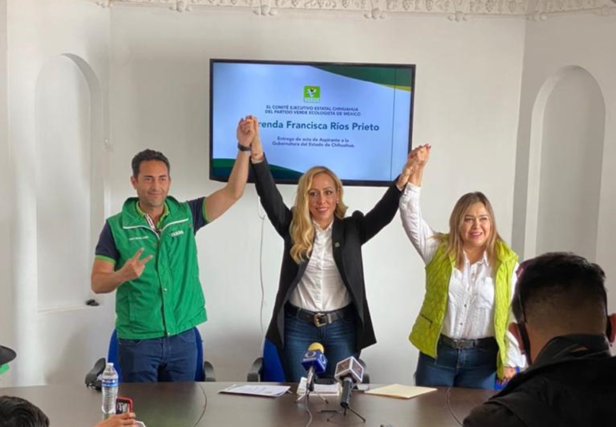La aspirante a la gubernatura de Chihuahua agradeció el apoyo de Manuel Barrera, delegado nacional y María Ávila, secretaria general del PVEM. Chihuahua, a quienes manifestó que se pintará de mujeres este proceso electoral 2021.