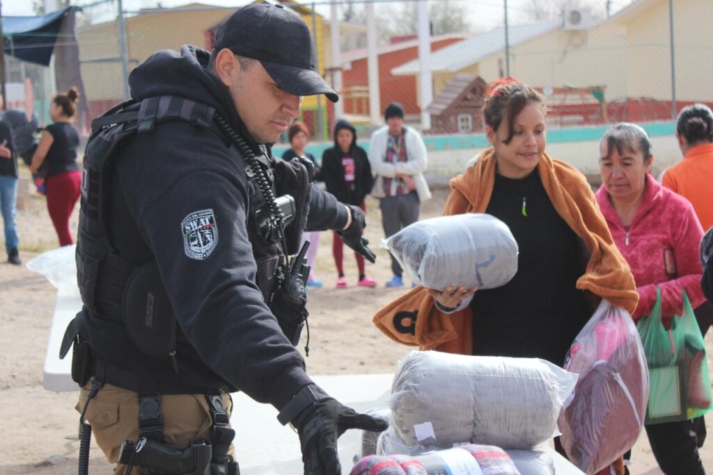 CD. JUAREZ, CHIH.- En un acto de solidaridad durante esta temporada decembrina, oficiales de la Fuerza Especial SWAT, de la Secretaría de Seguridad Pública del Estado (SSPE), se unieron para brindar abrigo y calor en esta temporada a los residentes de la Casa Hogar “Pan de Vida”, ubicada en la colonia Puerto de Anapra, al poniente de Ciudad Juárez.