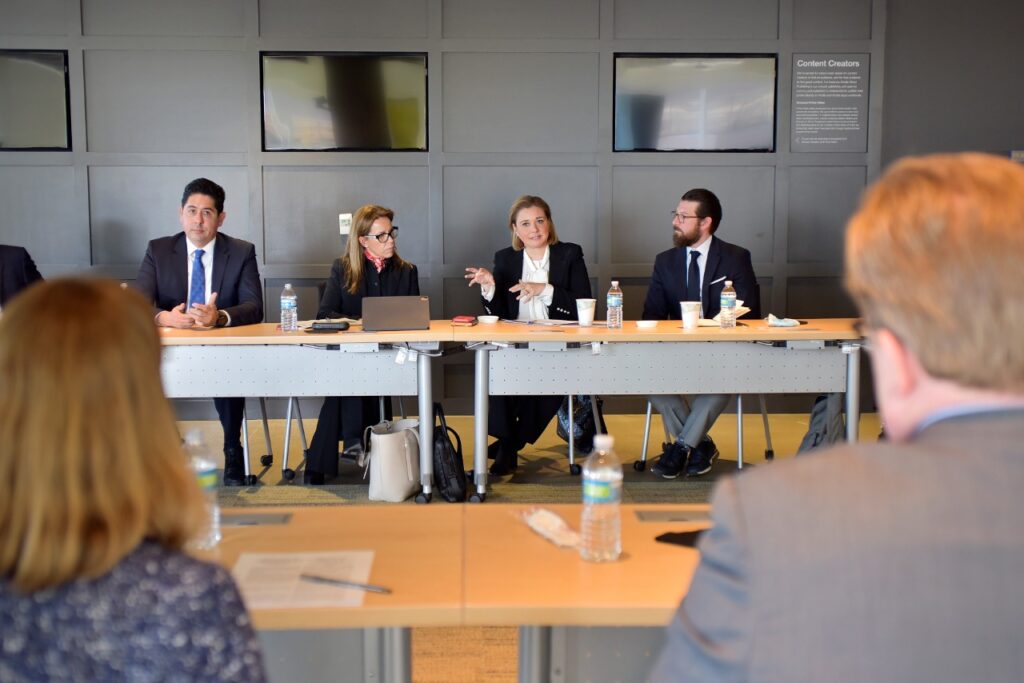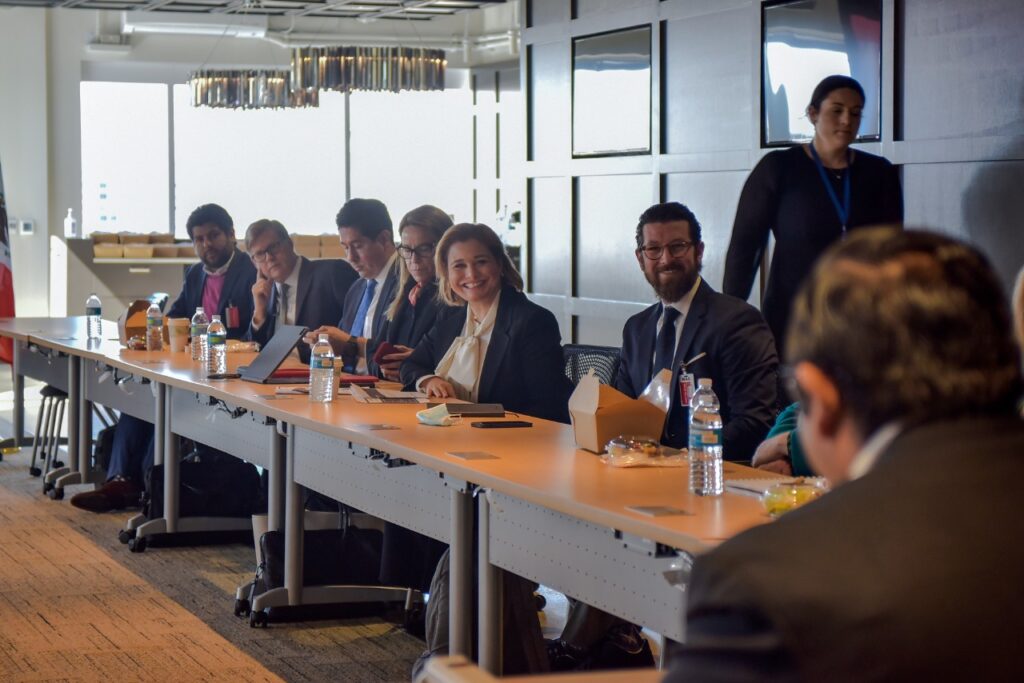 Asimismo, acompañada por secretarios integrantes del Gobierno del Estado, la Gobernadora explicó explicó el contexto chihuahuense en materia económica. De la misma forma, se dio paso a la explicación de los planes a futuro de la actual administración estatal, así como el rumbo y la visión y se tomaron notas sobre las consideraciones de estas empresas para ejecutarse en el Estado de Chihuahua.