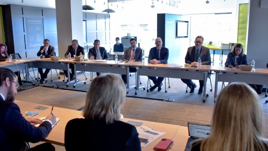 WASHINGTON, ESTADOS UNIDOS.- En el marco de su gira de trabajo en Washington, Estados Unidos, la Gobernadora del Estado, por medio de la fundación México-Estados Unidos, sostuvo reuniones con importantes empresarios del ramo tecnológico como Amazon, para atraer inversión extranjera al estado y refrendar el compromiso del Gobierno del Estado para reactivar la economía chihuahuense.
