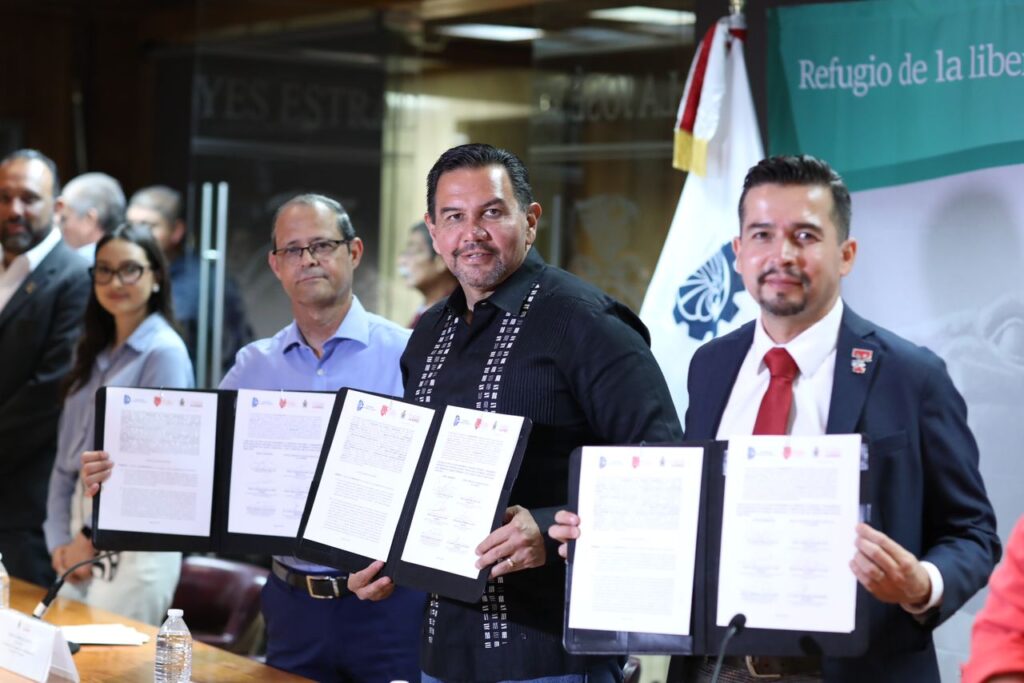 “Es un ganar-ganar aquí nadie pierde, nadie sede, gana el Tecnológico y gana el Gobierno Municipal y sobre todo ganan las y los jóvenes y las personas que serán atendidas o tendrán el contacto con ellos. Vamos a trabajar de la mano en beneficio de Ciudad Juárez, gracias por la confianza”, expresó el edil durante la ceremonia de la firma de colaboración.