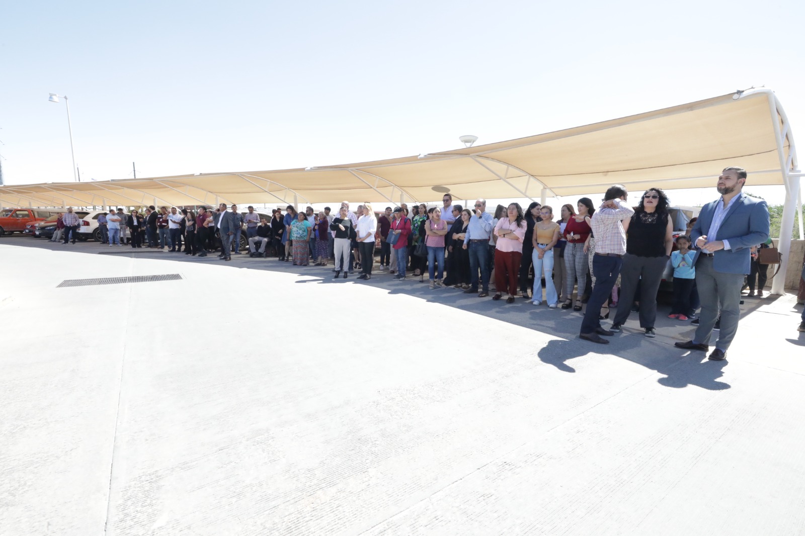 Mencionó que las personas fueron concentradas en tres puntos, ya que además de la salida principal, se tienen otras dos en las alas sur y norte del edificio.