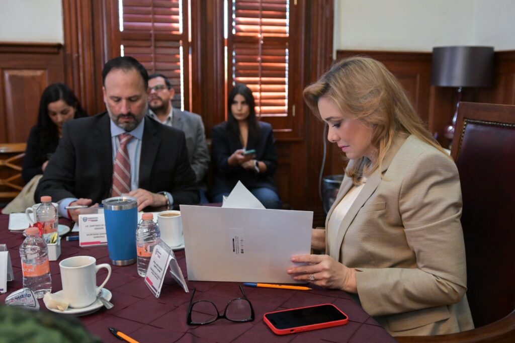CHIHUAHUA.- En sesión de la Mesa Estatal de Coordinación para la Construcción de la Paz, presidida por la gobernadora Maru Campos, autoridades de los distintos órdenes evaluaron las estrategias implementadas en conjunto, para fortalecer la seguridad de las personas en situación de migración.