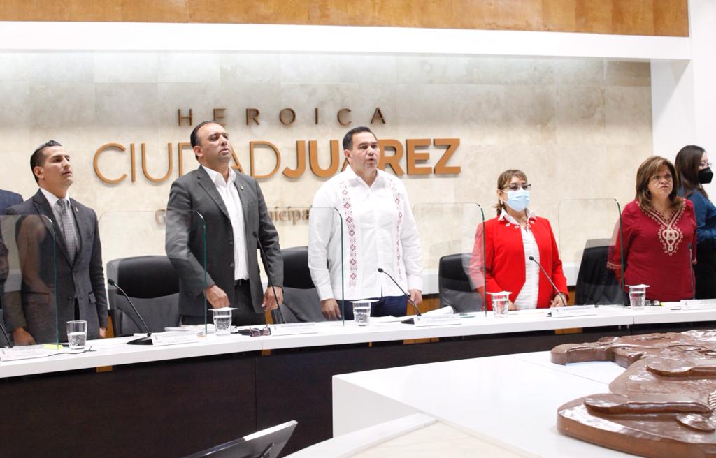 CD. JUAREZ, CHIH.- El Cabildo de Juárez llevo a cabo la sesión ordinaria número 4 en la que abordó 26 asuntos, entre los que se encuentra la instalación del Comité Municipal de Salud y un exhortó al Instituto Estatal Electoral (IEE) para que proceda a aplicar la Ley y se retire de la vía pública la propaganda electoral utilizada en la pasada elección.