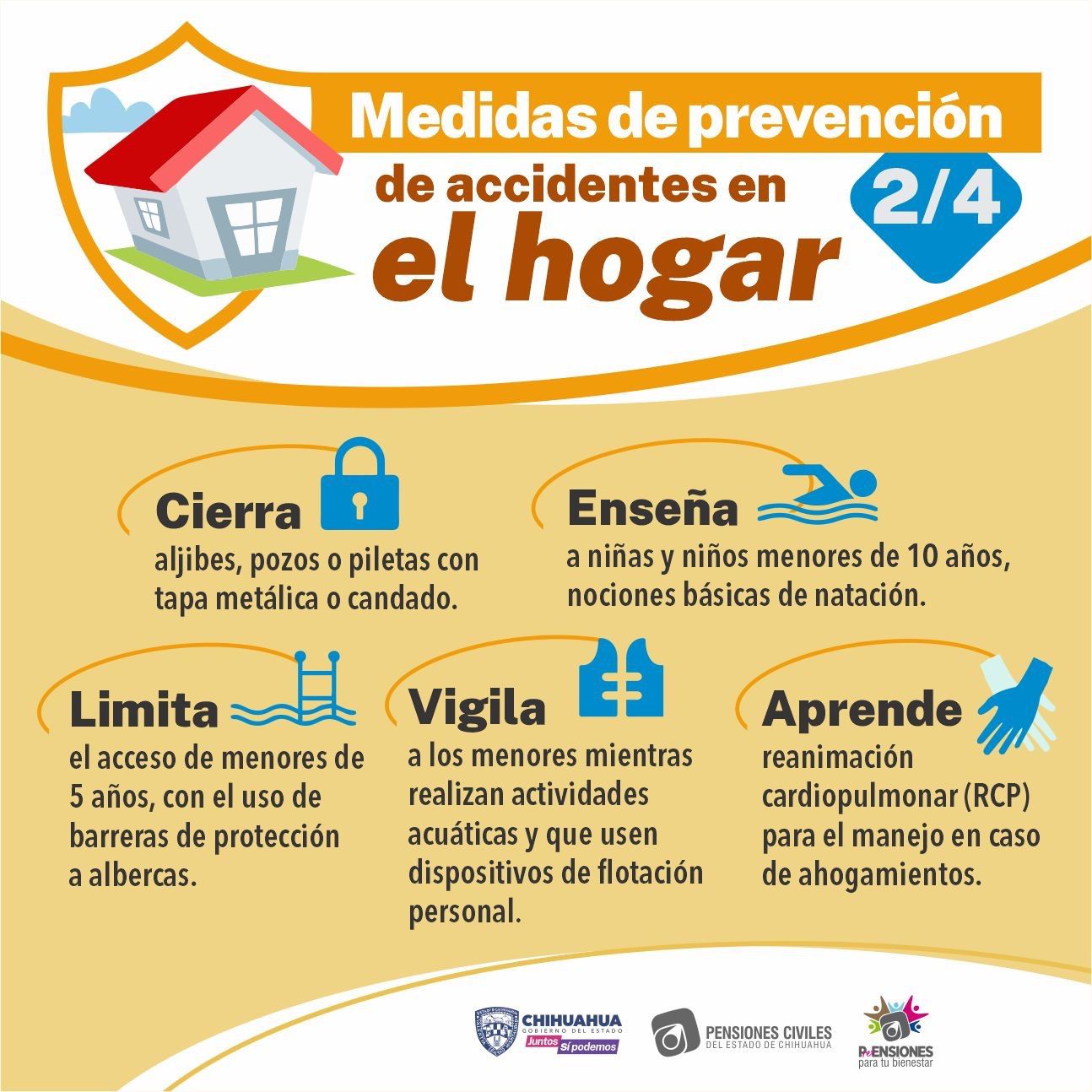 CD. JUÁREZ, CHIH.- Pensiones Civiles del Estado (PCE) exhorta a las y los chihuahuenses a reforzar la seguridad en sus hogares, y a tomar medidas preventivas para evitar lesiones y accidentes durante este periodo vacacional.