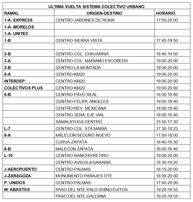 CD. JUÁREZ, CHIH.- La Oficina de Transporte Público en la Zona Norte del Gobierno del Estado, pone a disposición de los usuarios los horarios de servicios en camiones urbanos, con el fin de que organicen mejor sus desplazamientos en la ciudad, ante la contingencia sanitaria en contra del Covid-19.