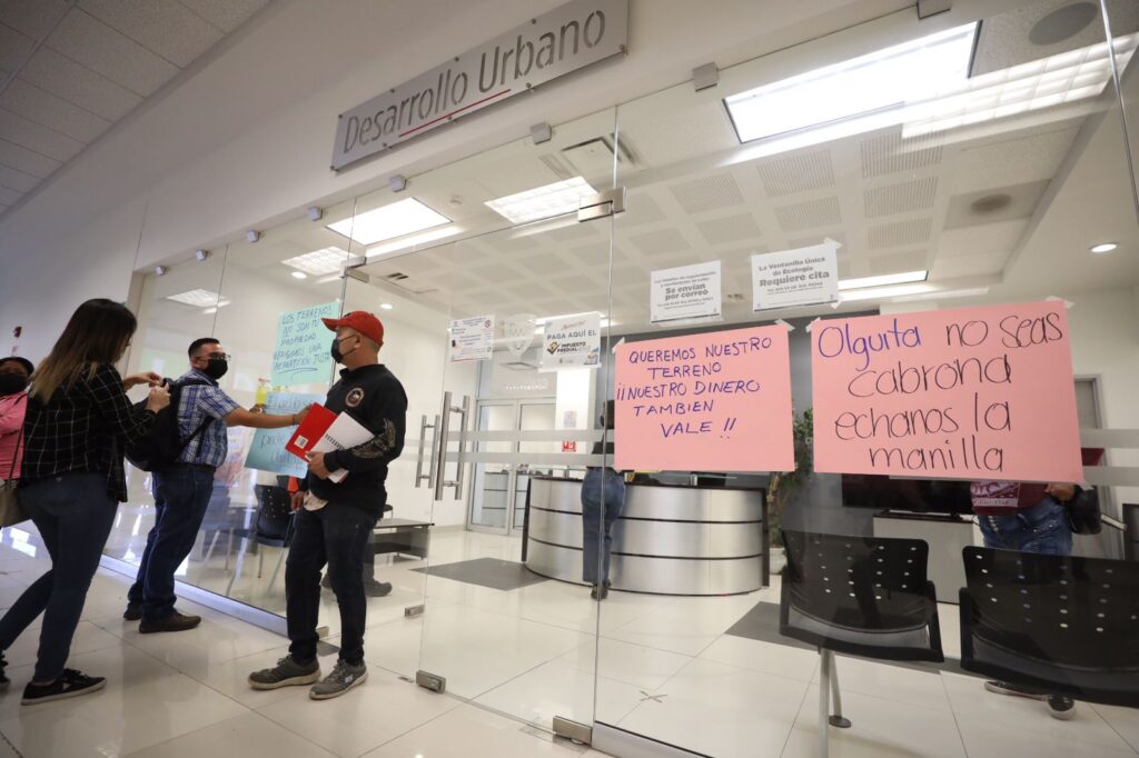 Los manifestantes se plantaron frente a la delegación de Desarrollo Urbano Zona Norte y también frente a la oficina del representante de Gobierno del Estado para exigir además que se regularice la tenencia de la tierra y se les dé certidumbre legal.