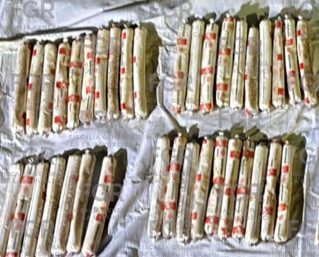 Al momento de la detención, aseguraron 87 salchichas de emulsión explosiva, 19 cilindros para realizar explosivos y dos chalecos tácticos.