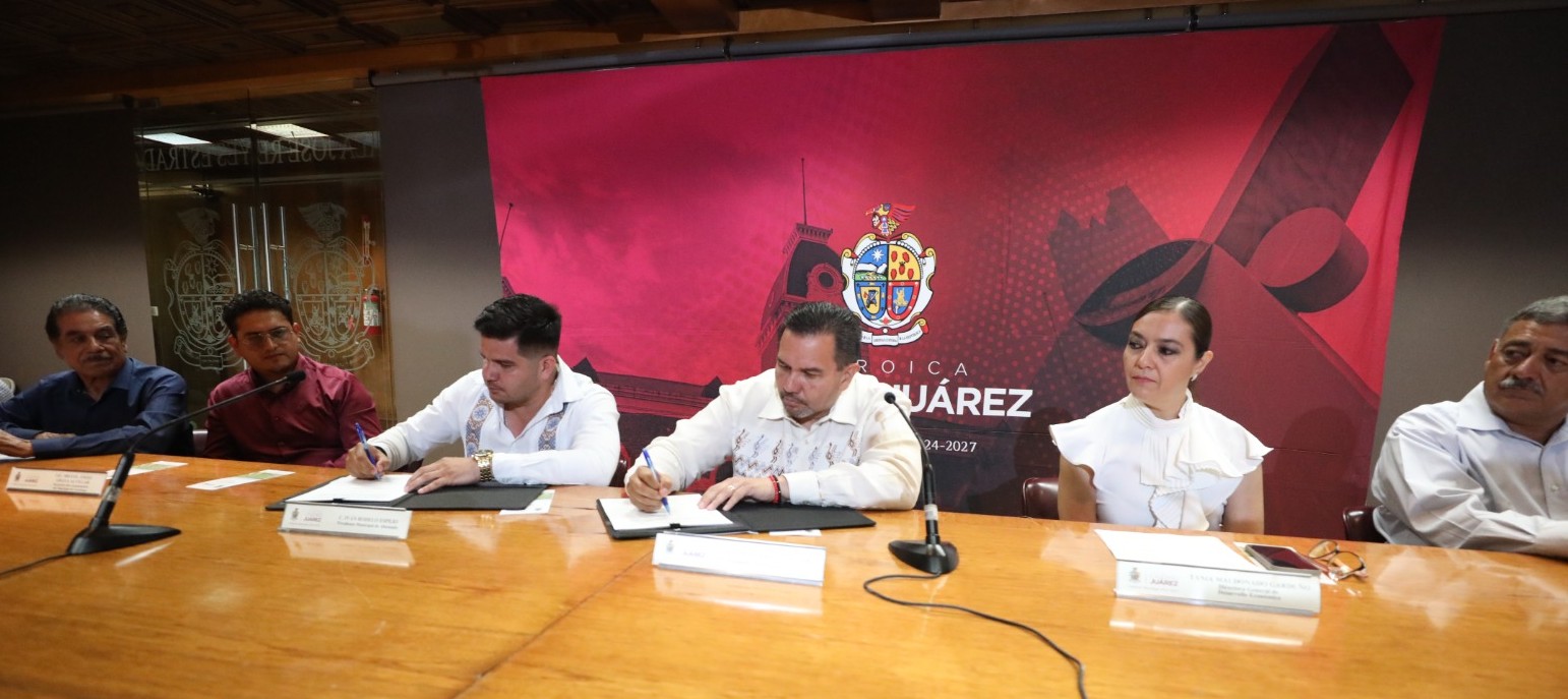 El alcalde Cruz Pérez Cuéllar encabezó la reunión y agradeció a los presentes por acudir a la firma del convenio, que será de gran utilidad, ya que las acciones a realizar se han implementado por tres años y los testimonios en El Valle de Juárez son muy positivos.