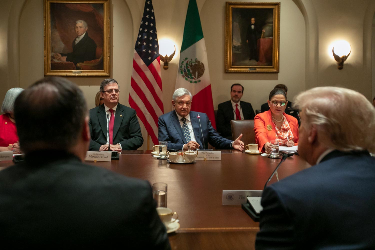 El secretario de Relaciones Exteriores, Marcelo Ebrard Casaubon, leyó la declaración conjunta que el pasado miércoles 8 de julio firmaron los presidentes de México y Estados Unidos en la Casa Blanca, en la que ambos países reconocen los avances hacia una relación renovada y fortalecida, preparada para enfrentar los desafíos económicos y de seguridad del siglo XXI de la región de América del Norte.