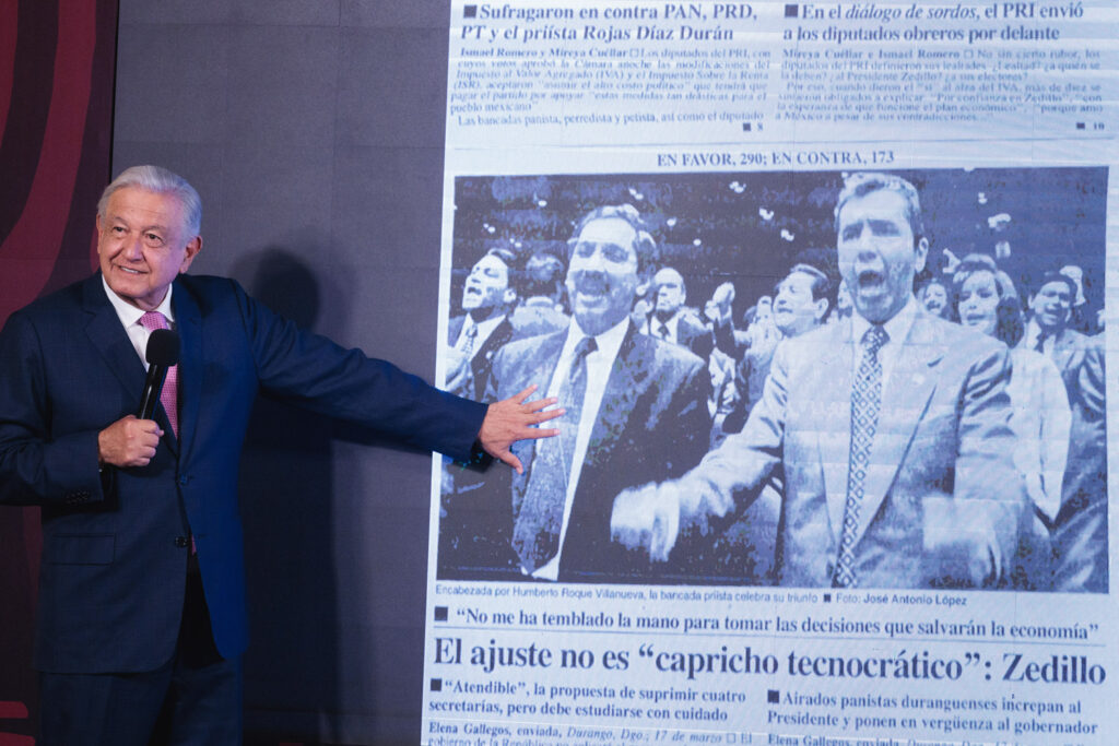 El presidente recordó que, aun cuando se aprobó en el Legislativo, en el Poder Judicial cancelaron la Ley Eléctrica, la cual garantizaría precios favorables a los consumidores. De la misma manera obstaculizaron la adhesión de la Guardia Nacional a la Secretaría de la Defensa Nacional; la construcción del Tren Maya, la prohibición de vapeadores, las leyes minera y electoral, entre otras acciones impulsadas por la 4T en beneficio de la población.
