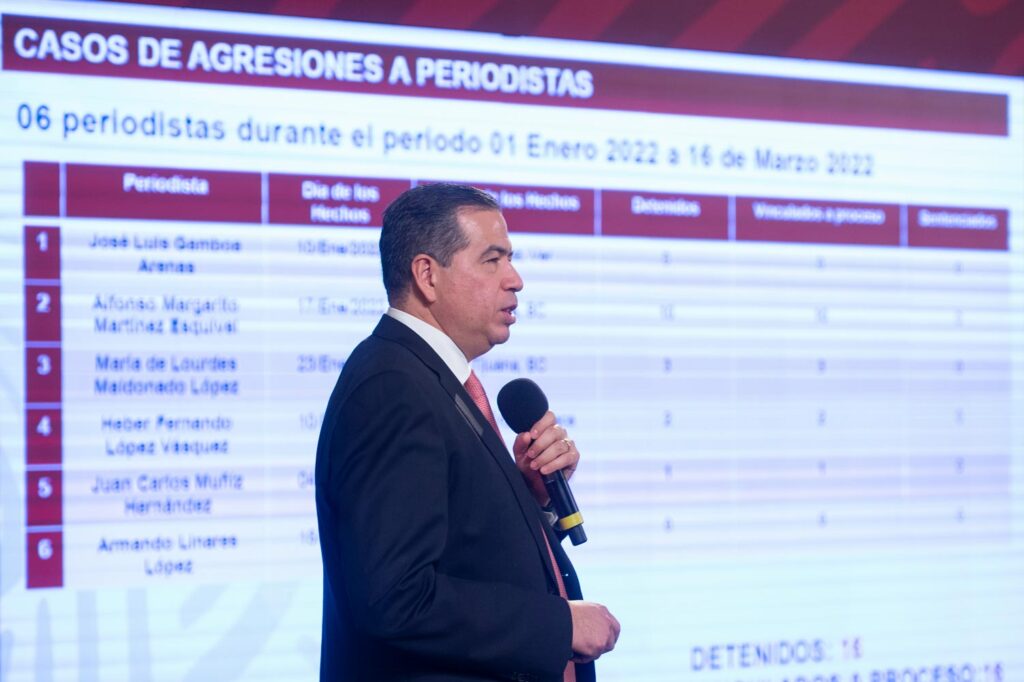 En conferencia de prensa matutina, el subsecretario de Seguridad, Ricardo Mejía Berdeja, dio a conocer los avances de las indagatorias sobre casos de periodistas asesinados.