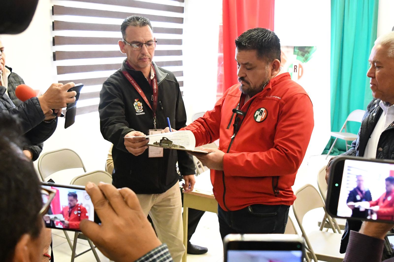 CD. JUAREZ, CHIH.- El Gobierno Municipal llevó a cabo este día la entrega de citatorios municipales por los edificios que albergan a los partidos Acción Nacional y Revolucionario Institucional, como parte del procedimiento legal por los adeudos que presentan en el pago del Impuesto Predial.