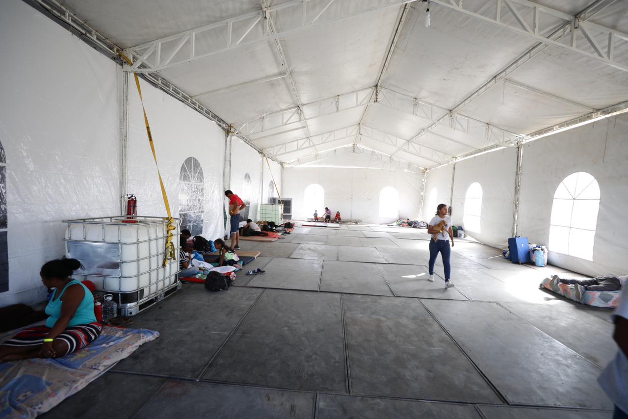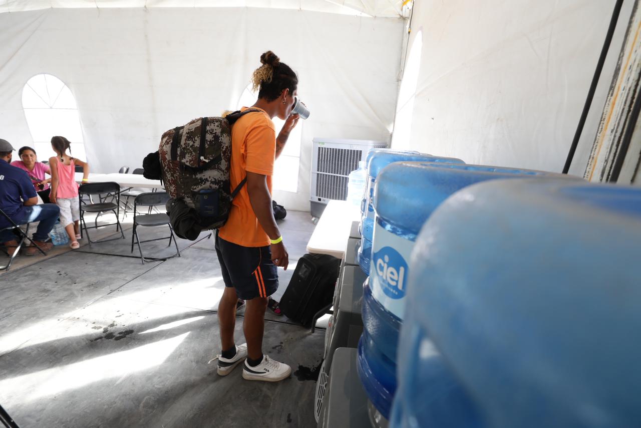El campamento está ubicado en la calle Moctezuma y David Herrera Jordán y cuenta con dos «galerones» que ofrecen resguardo a las familias migrantes.