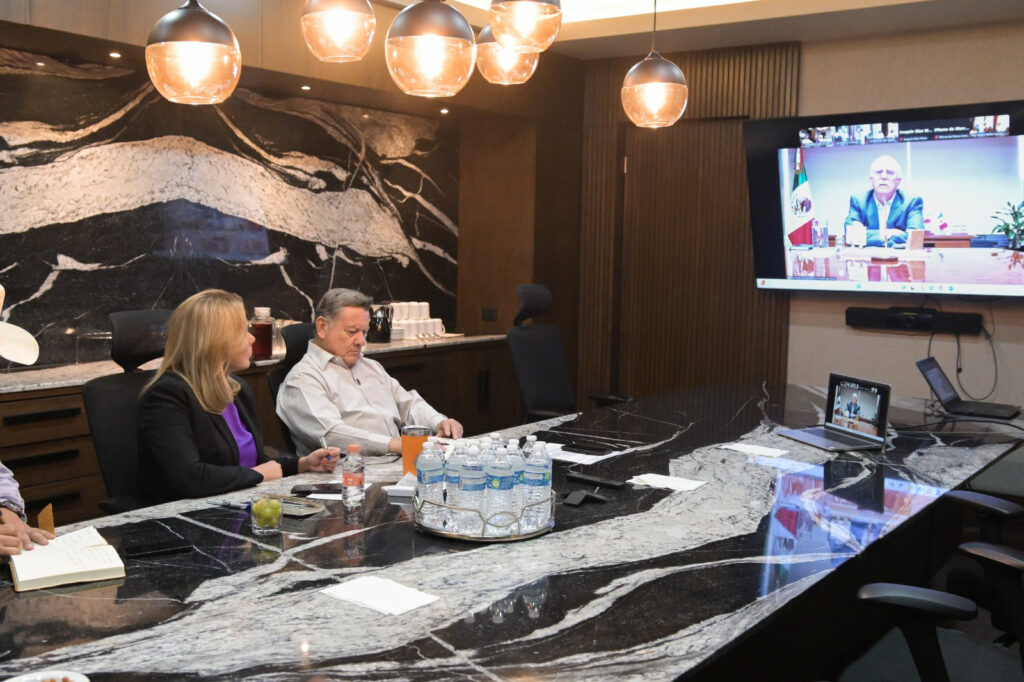 Vía virtual, la mandataria sostuvo una reunión con el titular de la Secretaría de Agricultura de México, así como siete gobernadores más, para evaluar soluciones que permitan retomar las actividades en la frontera