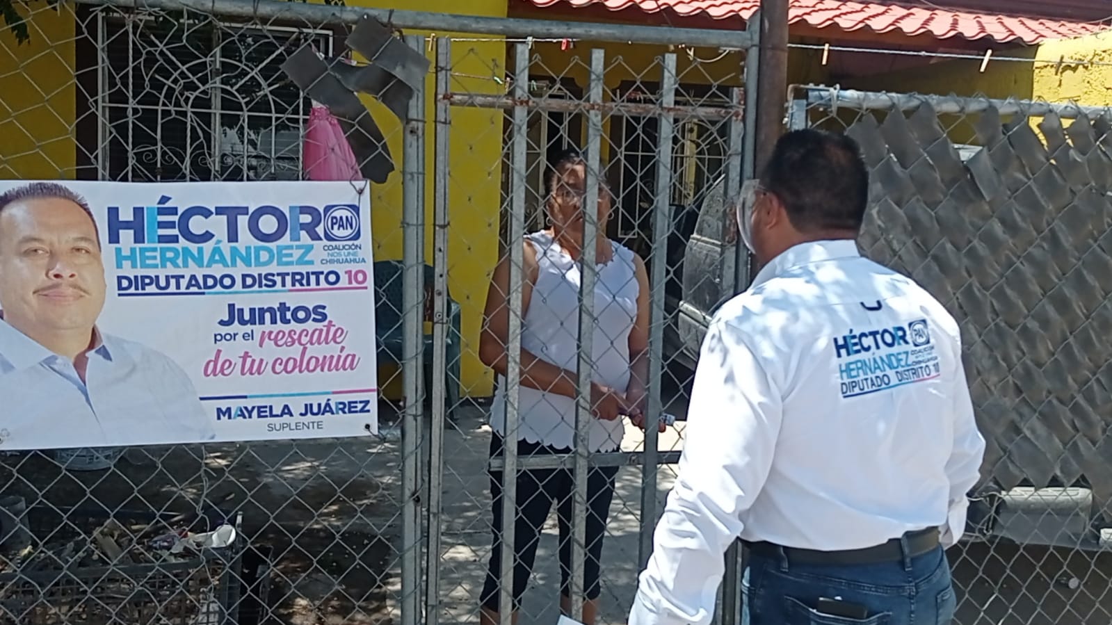 CIUDAD  JUAREZ. – Durante el recorrido por el fraccionamiento Riberas del Bravo etapa II, el candidato Héctor Hernández García por el distrito 10 local por el Partido Acción Nacional (PAN), hizo un compromiso con los vecinos de este sector para trabajar juntos y recuperar esta zona del abandono en que se encuentra desde hace muchos años.
