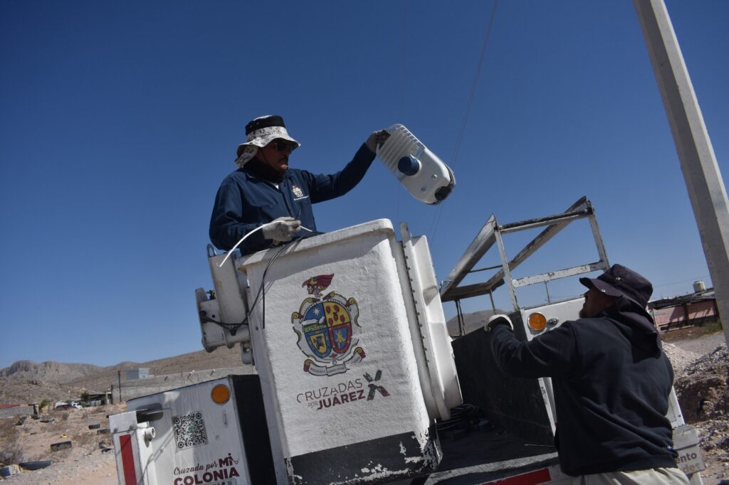 “Dando seguimiento al proyecto que tiene la Administración Municipal, a cargo del Alcalde Cruz Pérez Cuéllar, de iluminar con tecnología led toda Ciudad Juárez, en esta ocasión nos tocó entrar al sector de los kilómetros la colonia Villa Esperanza”, indicó.