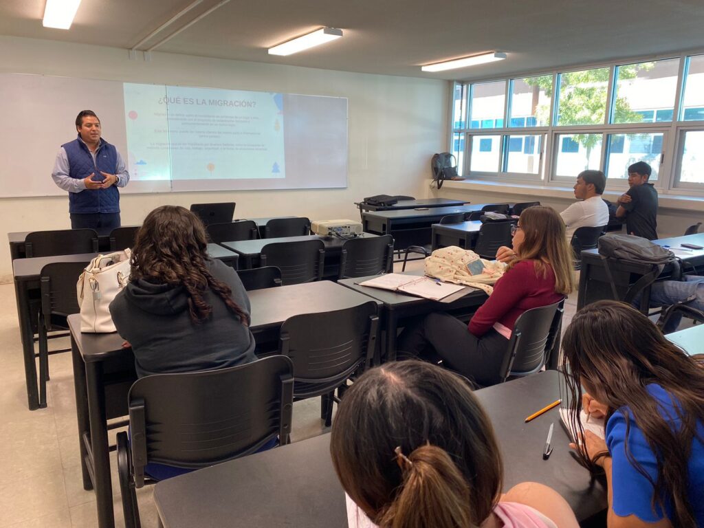 CD. JUAREZ, CHIH.- La Dirección de Derechos Humanos del Municipio llevó a las aulas de la Universidad Autónoma de Ciudad Juárez (UACJ), la charla “Personas Migrantes: Un Grupo en Situación de Vulnerabilidad. Entendiendo la Migración como un Derecho Humano”.