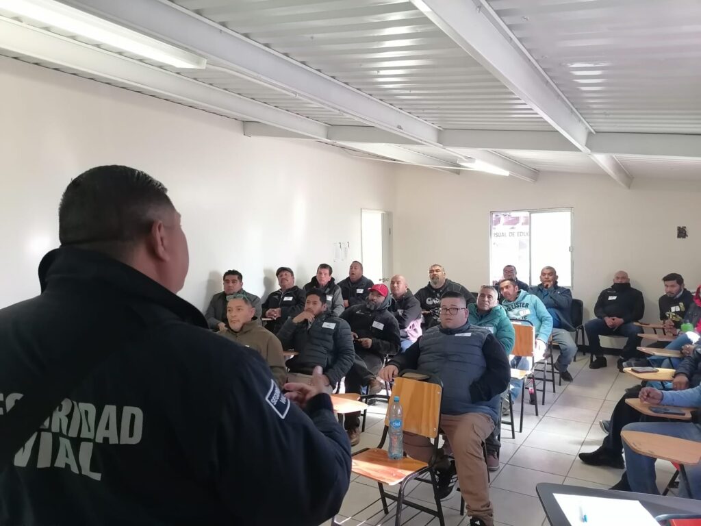 CD. JUAREZ, CHIH.- Policías viales destacamentados en el área de Educación Vial, de la Coordinación General de Seguridad Vial impartieron el curso en manejo defensivo a un grupo de 23 conductores de la empresa Juárez Bus, a fin de concientizarlos sobre el uso de las buenas prácticas viales al momento de manejar.