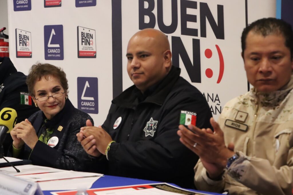 CD. JUAREZ, CHIH.- La Secretaría de Seguridad Pública Municipal, participó en la rueda de prensa ofrecida por la Cámara Nacional de Comercio, Servicios y Turismo (CANACO) para dar a conocer los pormenores del operativo especial con motivo del inicio del próximo “Buen Fin”.