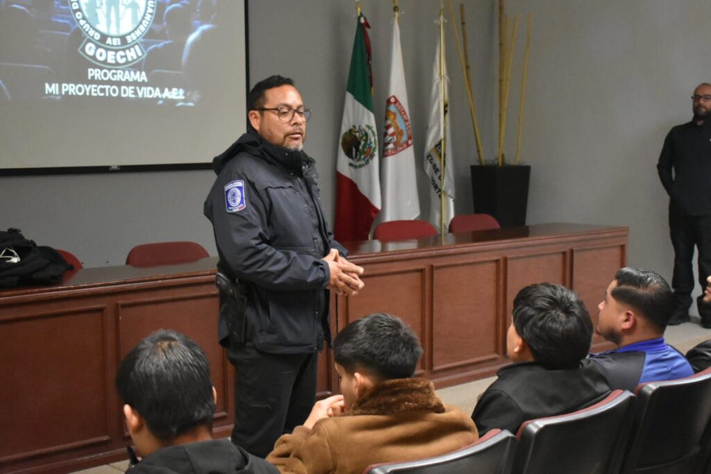 CD. JUAREZ, CHIH.- Como parte del programa “Proyecto de Vida” impulsado por el Grupo de Orientación Escolar Chihuahuense (GOECHI), este viernes estudiantes de la Universidad Vizcaya, recorrieron las instalaciones de la Fiscalía de Distrito Zona Norte.