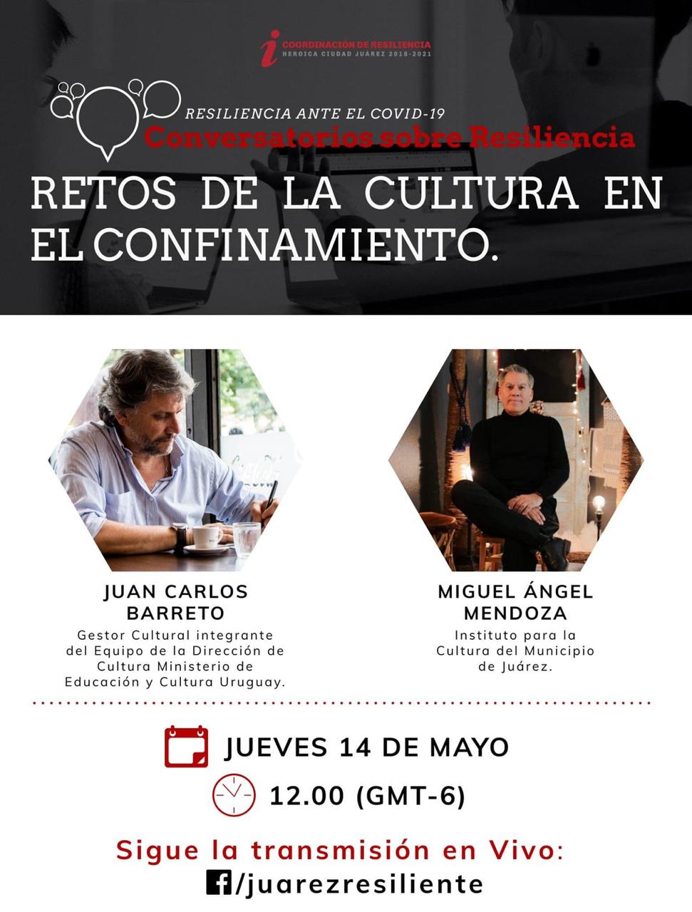 En esta charla informativa participarán Juan Carlos Barreto, gestor cultural e integrante del Ministerio de Educación y Cultura de Uruguay y Miguel Ángel Mendoza, titular del Instituto para la Cultura del Municipio de Juárez (Ipacult).