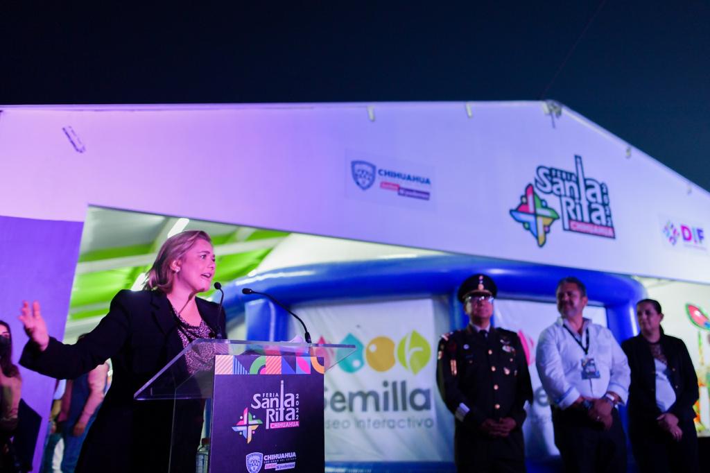 CHIHUAHUA, CHIH.- La Gobernadora Maru Campos Galván cortó el listón inaugural de la edición 2022 de la Feria de Santa Rita, después de dos años de no realizarse debido a las condiciones generadas por la pandemia de COVID-19.