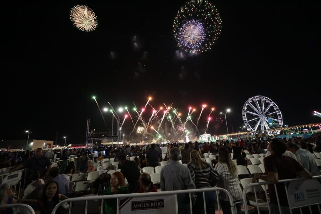 CD. JUAREZ, CHIH.- Con un espectáculo de fuegos artificiales y la música de Conjunto Primavera, el Presidente Municipal, Cruz Pérez Cuéllar en compañía de su esposa Rubí Enríquez Parada, inauguraron la Feria Juárez 2023 que ahora se trasladó al sur de la ciudad en la avenida De Las Torres.