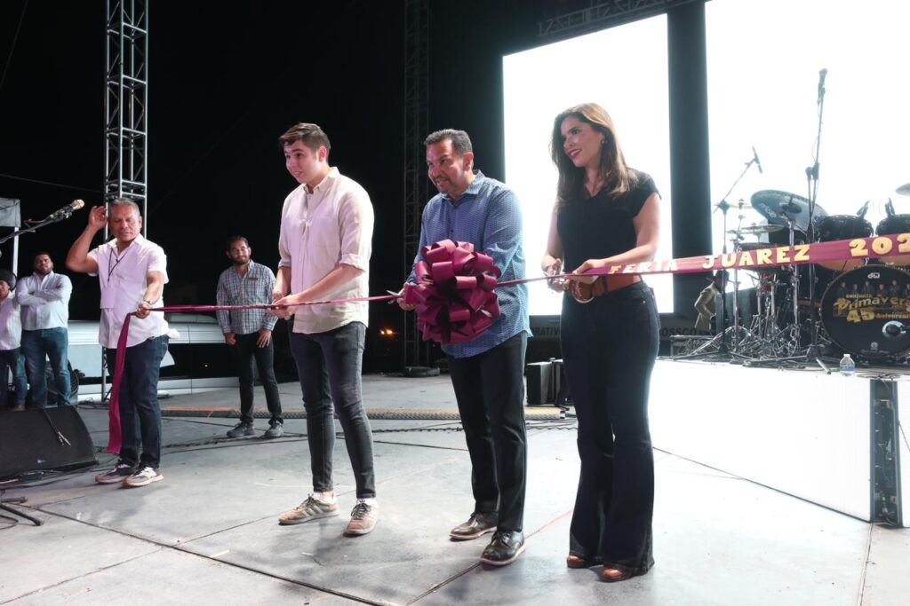 En la inauguración el alcalde realizó el corte de listón y dio inicio con los fuegos artificiales, además de disfrutar del espectáculo musical en compañía de su esposa y miles de juarenses reunidos en el lugar.