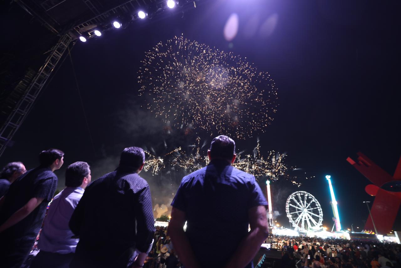 El alcalde Pérez Cuéllar dio la bienvenida a las miles de familias fronterizas que acudieron a la inauguración de la feria, mismos que participaron en la cuenta regresiva para que las autoridades munipales, estatales y representantes del comercio organizado cortarán el listón inaugural.