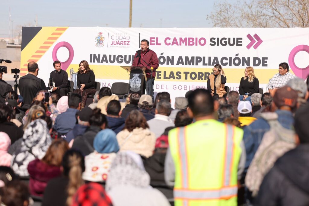 CD. JUAREZ, CHIH.- La ampliación de la avenida De las Torres es parte de una estrategia integral que viene a elevar la calidad de vida de las y los habitantes del suroriente de la ciudad, afirmó el Presidente Municipal, Cruz Pérez Cuéllar durante la ceremonia de apertura de la arteria.