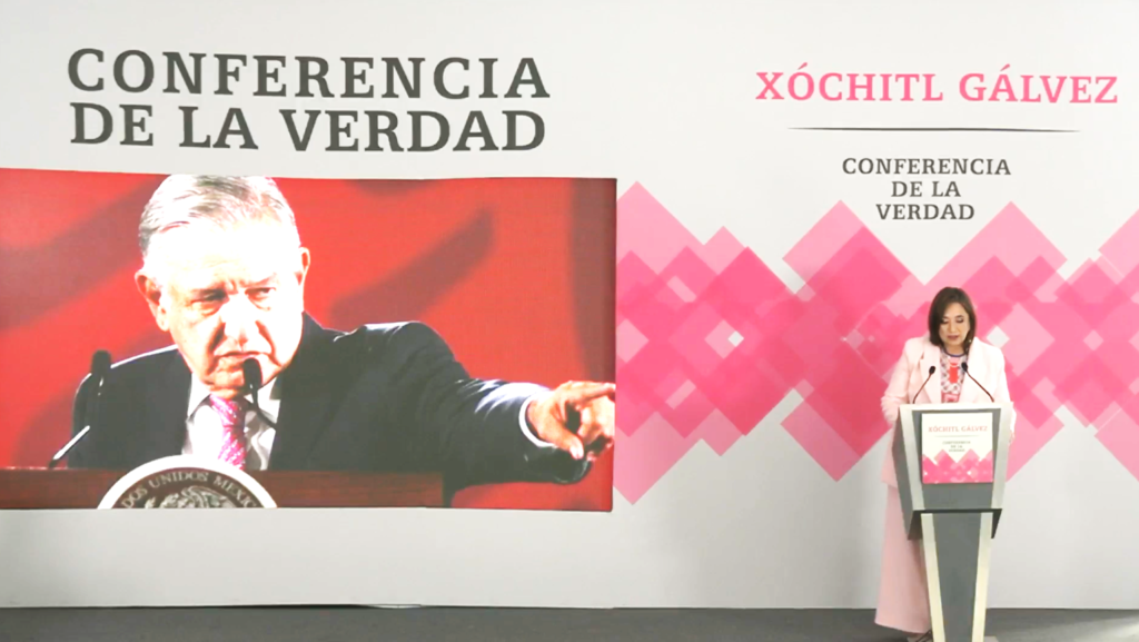 CIUDAD DE MEXICO.- Este lunes, la precandidata presidencial de la coalición «Fuerza y Coalición por México», Xóchitl Gálvez, inauguró sus ‘Conferencias de la verdad’, sus anuncios que tendrán un formato de seis preguntas en reacción a las matutinas del presidente Andrés Manuel López Obrador.