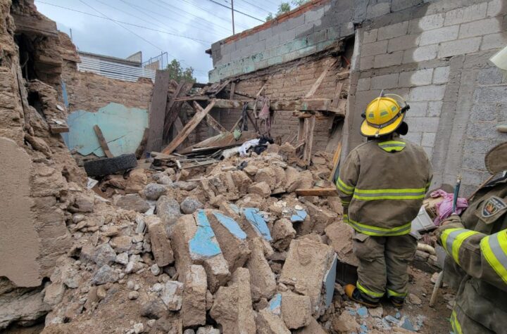 Atiende Protección Civil derrumbe en finca de adobe en la colonia Arroyo Colorado