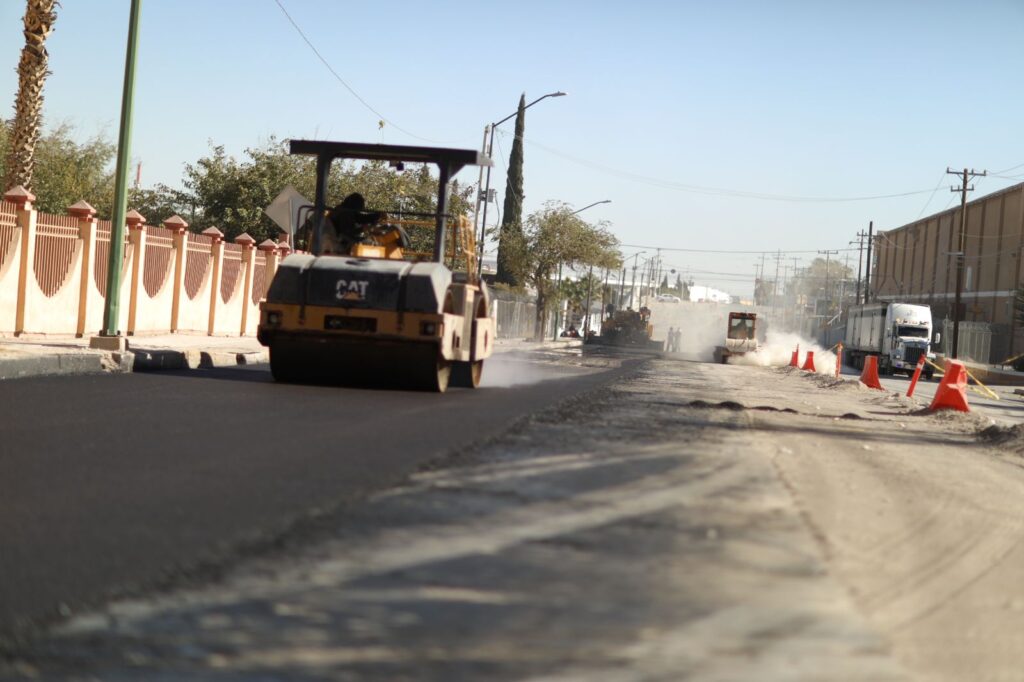CD. JUAREZ, CHIH.- Personal de la Dirección General de Obras Públicas del Municipio, inició los trabajos de tendido de carpeta asfáltica en la calle Magneto, como parte de los trabajos de repavimentación del Programa de Mejoramiento de Vialidades.