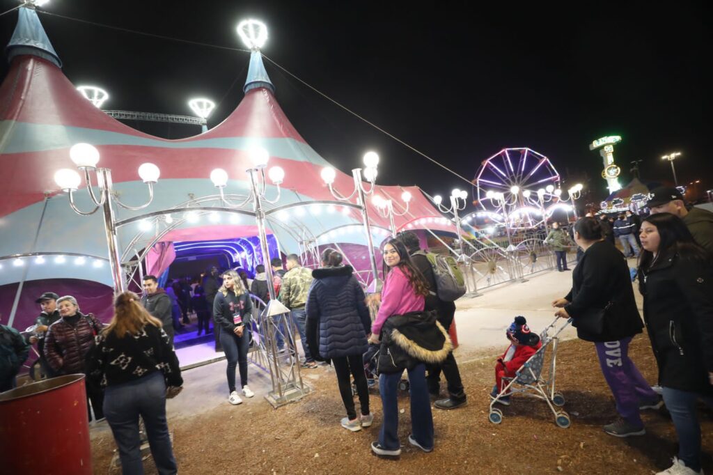 CD. JUAREZ, CHIH.- Luces multicolores, funciones de circo, juegos mecánicos y la pista del hielo, son algunos de los múltiples atractivos que ofrece la Villa Navideña en la Plaza de la Mexicanidad.