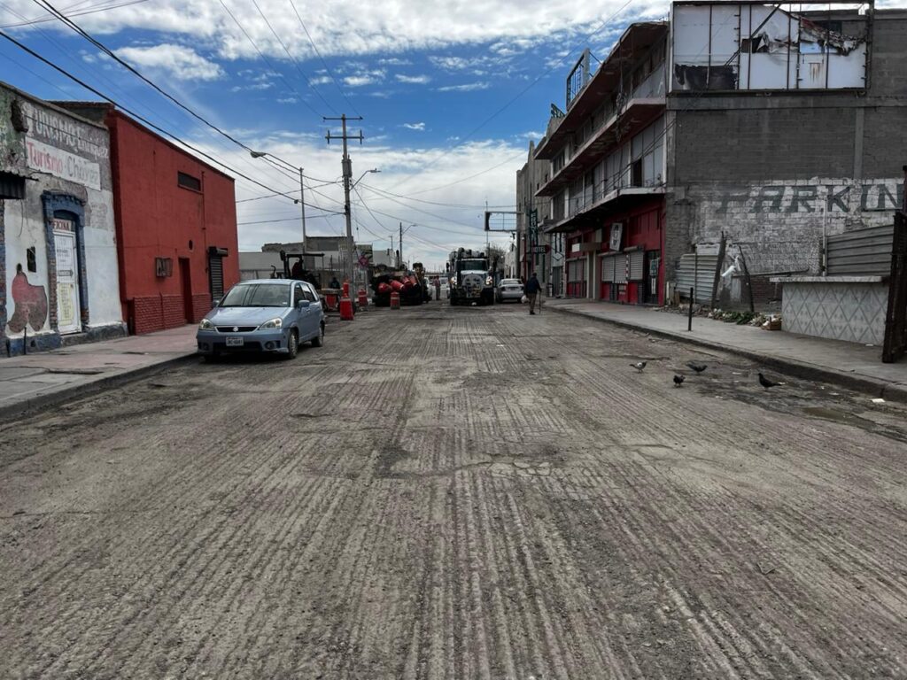 CD. JUAREZ, CHIH.- Personal de la Dirección General de Obras Públicas inició los trabajos de fresado en varias calles del Centro Histórico que serán repavimentadas con el Programa de Mejoramiento de Vialidades con recursos del Registro Público Vehicular (REPUVE).