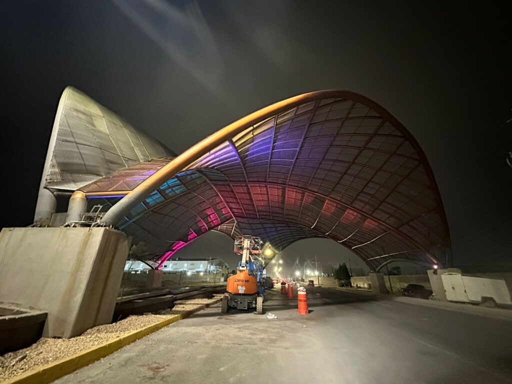 El funcionario explicó que la iluminación está en diferentes colores, con el fin de generar una imagen dinámica por las noches en la estructura, pues está ubicada en uno de los accesos principales de esta frontera y representa una bienvenida grata, además de una mejora importante en la imagen urbana.