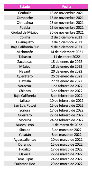 Coahuila, Campeche, Chihuahua, Puebla, Ciudad de México y Colima son las primeras entidades donde se realizarán.