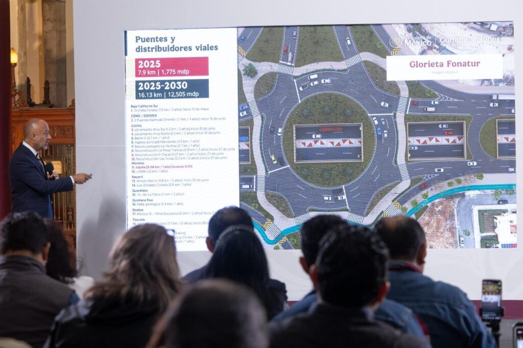 Sobre los ejes prioritarios destacó que en el 2025 será la construcción de 193 km con una inversión de 10 mil 254 mdp para obras de modernización y construcción de las carreteras: Cuautla – Tlapa; Tamazunchale – Huejutla; Bavispe – Nuevo Casas Grandes; el Circuito Tierra y Libertad; Toluca – Zihuatanejo; Salina Cruz – Zihuatanejo; Macuspana – Escárcega; Ciudad Valles – Tampico; Saltillo – Monclova (7,724 mdp – 179 km) 2026 y Guaymas – Esperanza – Yécora – Chihuahua.