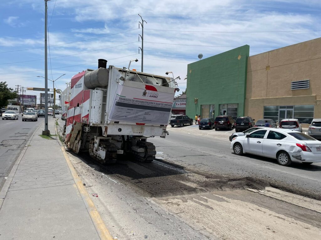 CD. JUAREZ, CHIH.- Personal de la Dirección General de Obras Públicas inició los trabajos previos a la repavimentación del bulevar Oscar Flores, el cual será atendido con los recursos que implementa el Gobierno Municipal como parte del Registro Público Vehicular (REPUVE).