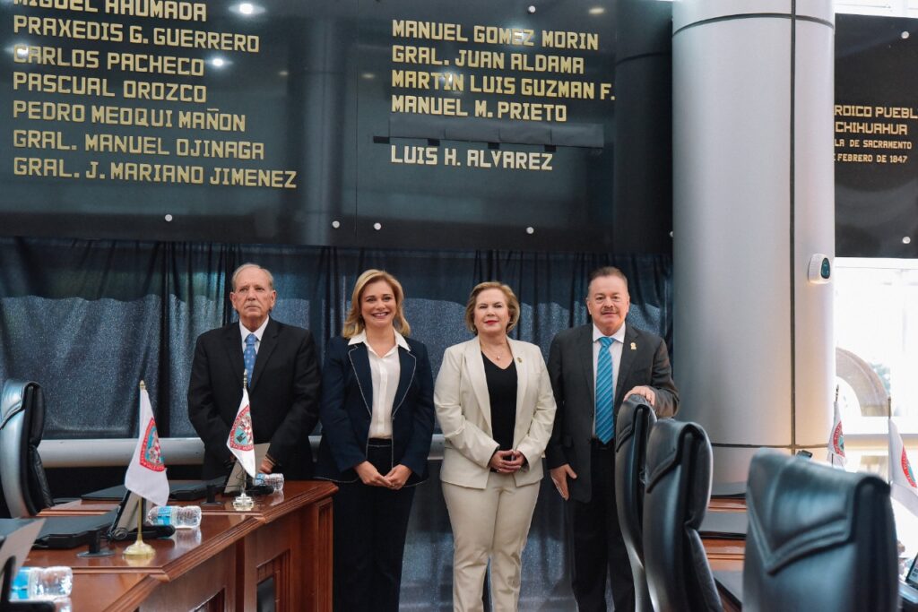 CHIHUAHUA, CHIH.- Con la presencia de las Titulares del Poder Ejecutivo, Judicial Y Legislativo, en sesión Solemne del Segundo Año de la 67 Legislatura, fueron develadas las letras doradas con el nombre de Don Luis Héctor Álvarez Álvarez, las cuales se colocaron en los Muros de Honor del Salón de Sesiones.