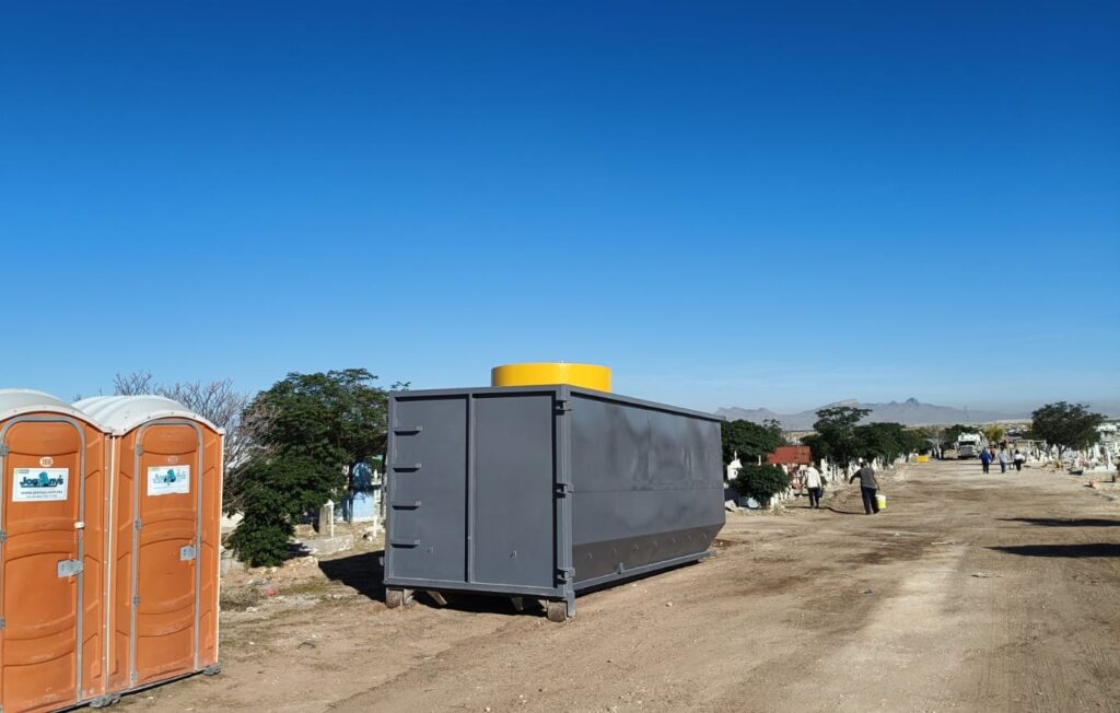 CD. JUAREZ, CHIH.- Con el propósito de mantener en buen estado los alrededores del Panteón San Rafael durante las visitas por el Día de Muertos, la Dirección de Limpia del Gobierno Municipal instaló tres módulos del programa “Puntos Limpios a tu Colonia” en este camposanto municipal.