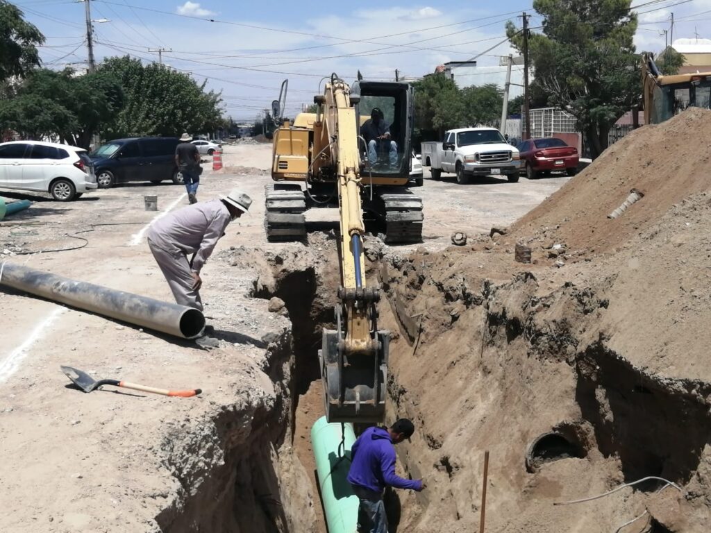 CD. JUAREZ, CHIH.- Como parte de los trabajos de pavimentación a base de concreto hidráulico y alcantarillado que realiza la Dirección General de Obras Públicas en la calle Mamey, se ha logrado la reposición de 400 de los 833 metros lineales de colector que se encuentran en el tramo entre Manuel J. Clouthier y Cártamo.